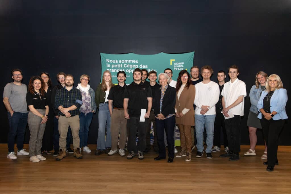 2e photo de groupe : Membres de l’équipe du LabIDEA, membres du jury, finissants et finissantes participantes, représentant.es des MRC invitées, personnel du Cégep.
