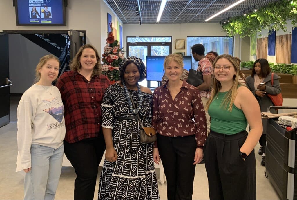 Karelle Farley, technicienne en loisirs, Justine Bouley, étudiante en Sciences humaines et responsable du socio-culturel à l’AGEECST, Jacinthe Parent, conseillère pédagogique – volet international, Charleine Tuedjo Tegninko, étudiante en Techniques de bureautique, Andrée Chartier, enseignante en Techniques de bureautique et Techniques d’Administration et de Gestion, Justine Bouley, étudiante en Sciences humaines et responsable du socio-culturel à l’AGEECST.